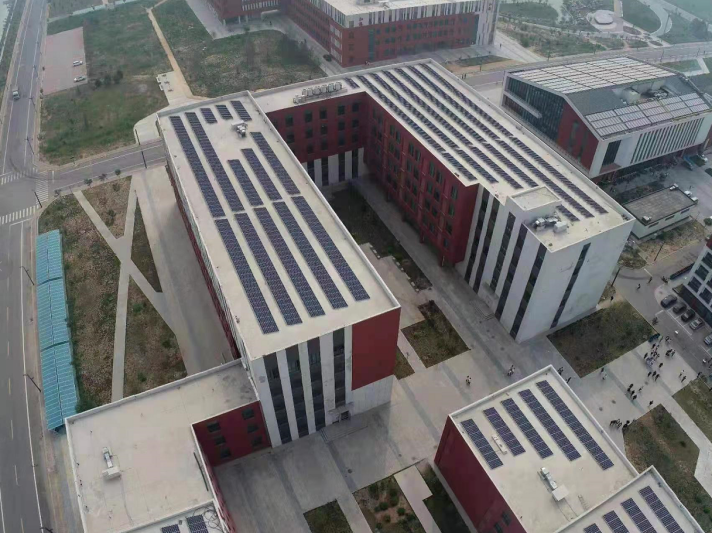 該電站建設(shè)于石家莊信息工程學(xué)院中,利用教學(xué)樓閑置屋頂,進(jìn)行光伏電站建設(shè),新盛美(天津)建設(shè)集團(tuán)有限公司作為小E負(fù)責(zé)采購水泥基礎(chǔ)、輔材及施工。