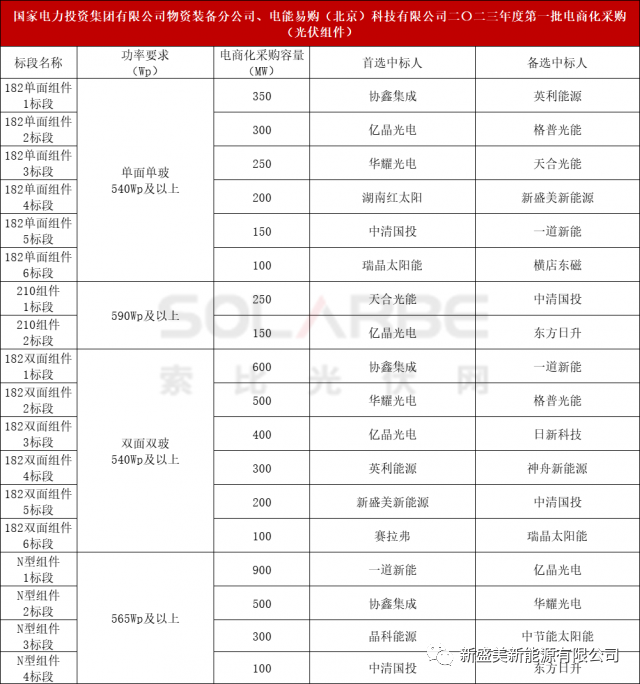 新盛美新能源中標(biāo)國(guó)家電力投資集團(tuán)有限公司物資裝備分公司、電能易購(gòu)(北京)科技有限公司二〇二三年度第一批電商化采購(gòu)(光伏組件)項(xiàng)目。